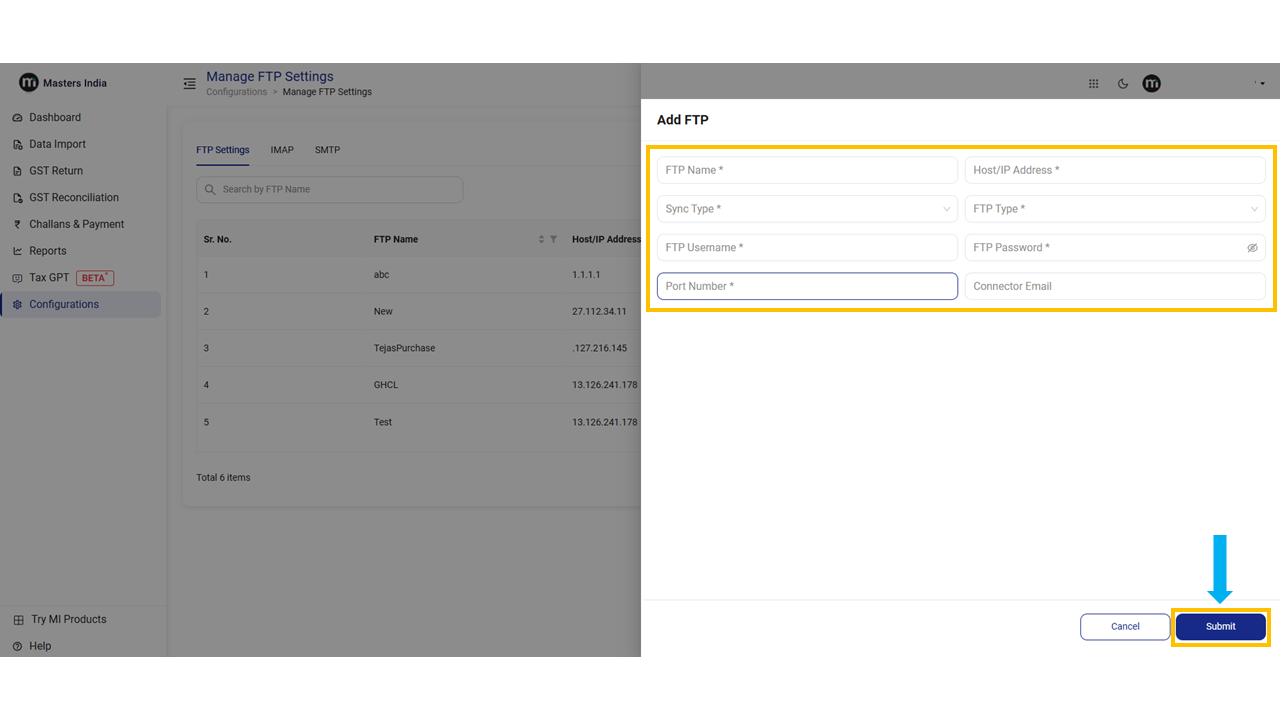 After filling in the manual details the user can click on Submit button to create a new FTP/SFTP.