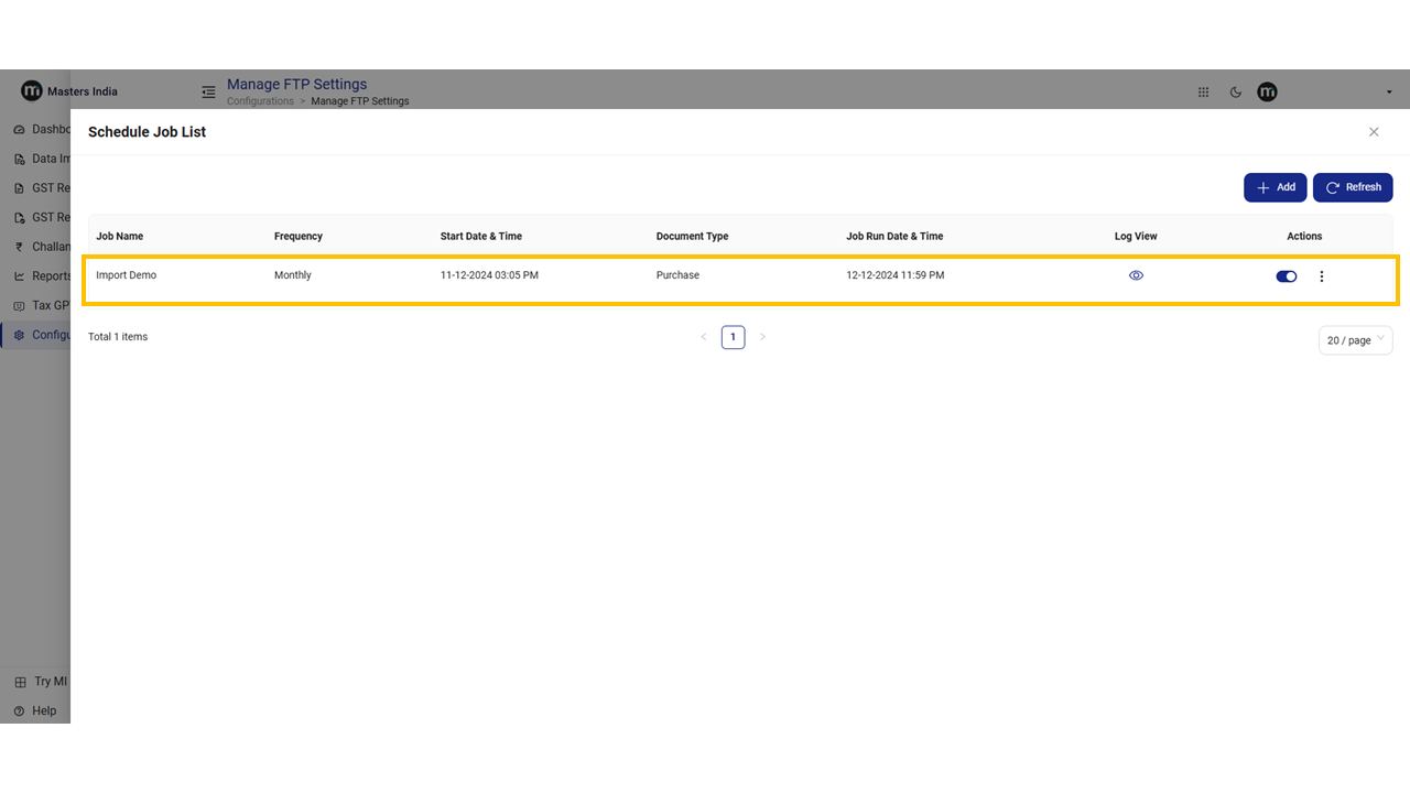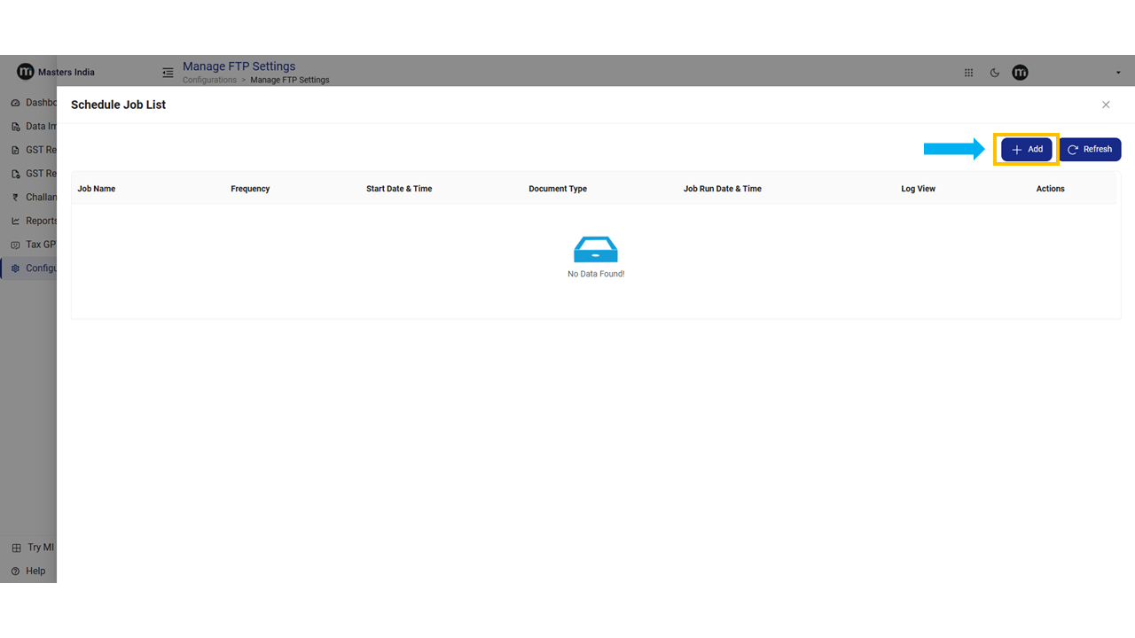 Click on Schedule Job, and the two buttons will display - Add and Refresh.&#x20;