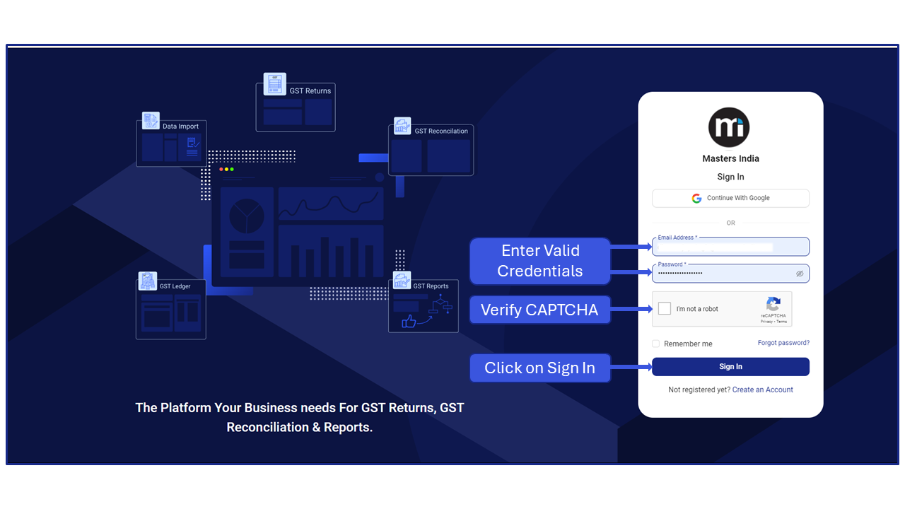 Login to the GST Enterprise software using a valid 'User ID' and 'Password', enter valid then click on the “Sign In” tab.