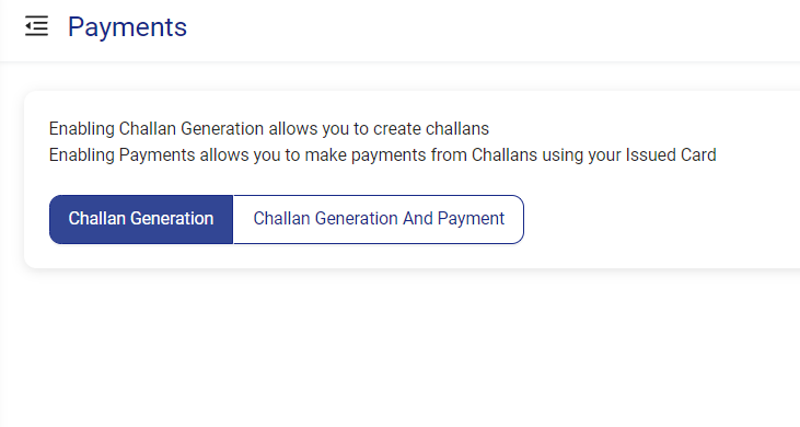 2. User can avail the commercial card and use the feature to generate and pay challans on the platform.