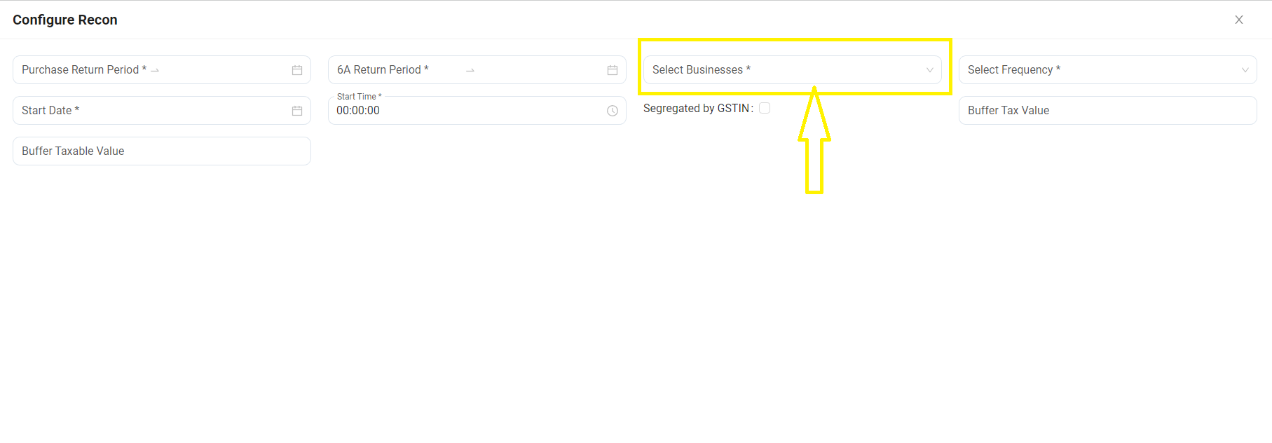 3. **Select Businesses:** Users can 'Select GSTINs' from the drop-down, for which they want to execute the reconciliation regularly.