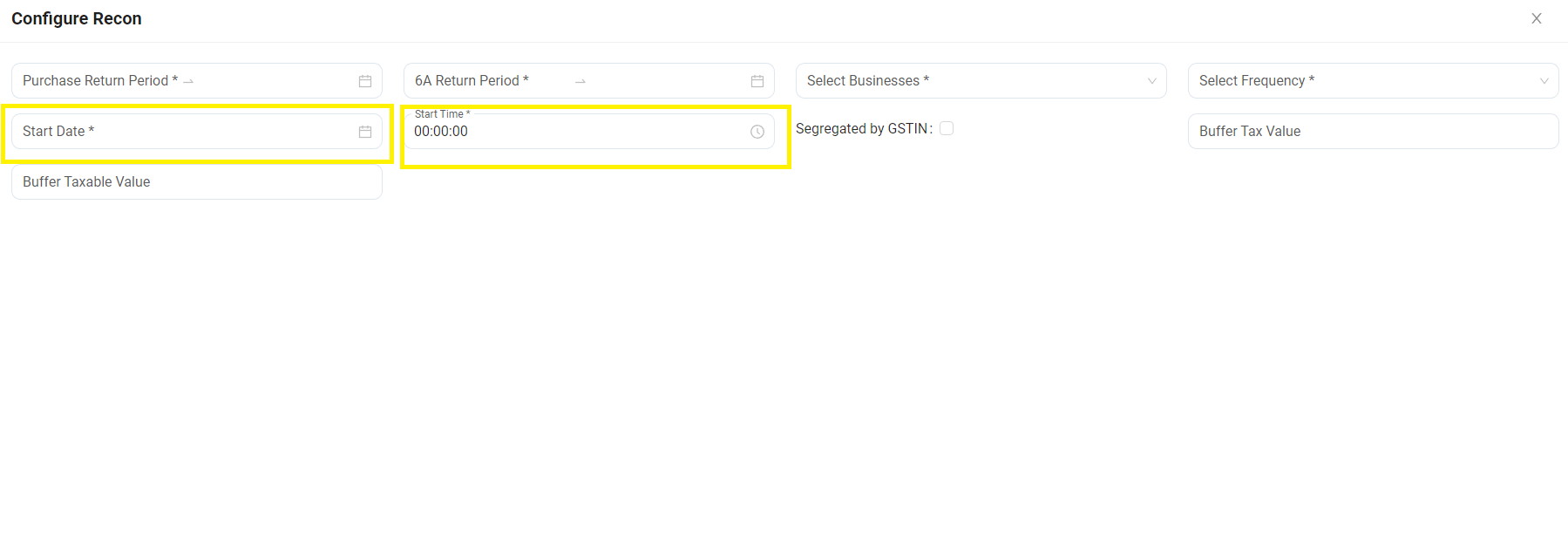 6. **Start Time:** Users can select the time to Start reconciliation.&#x20;
