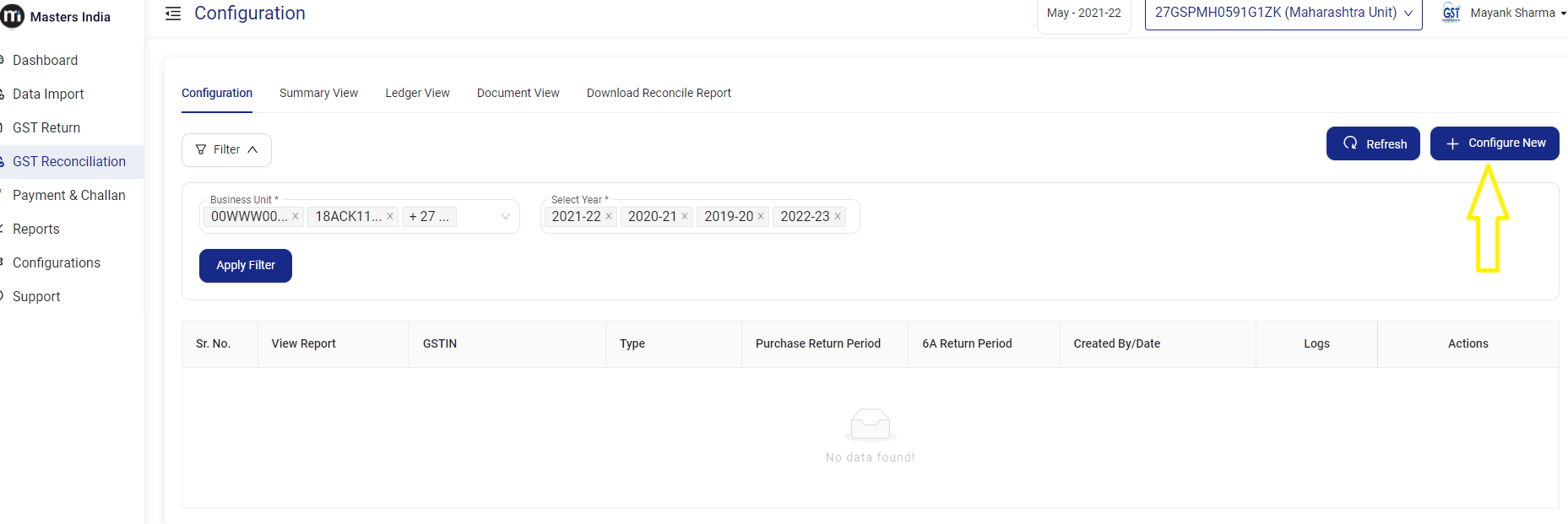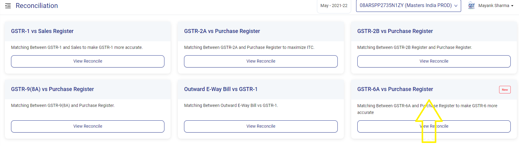 **Step 3**: Click on the IMS Vs Purchase Register ‘View Reconcile’ tab