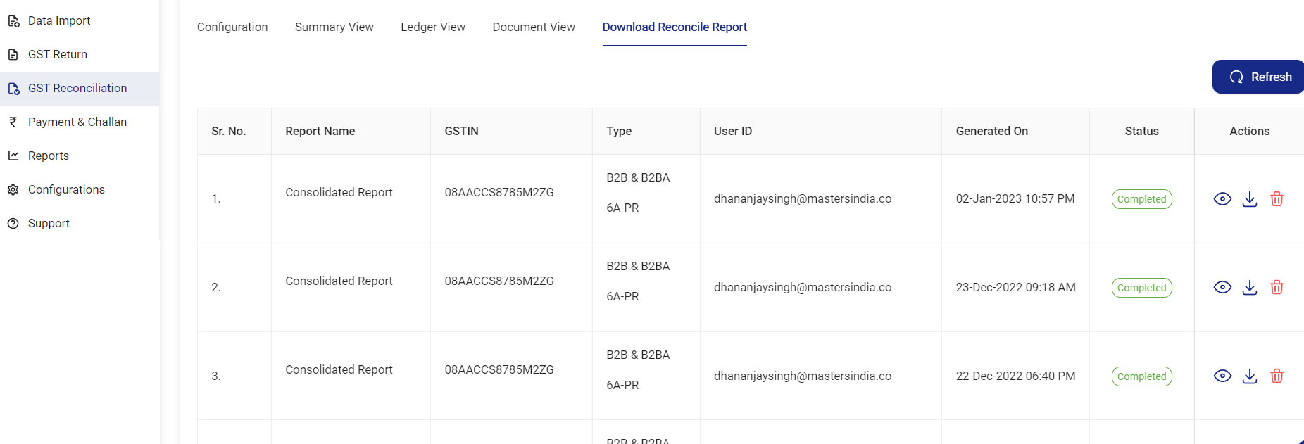 It is a report containing all unique vendors and their status according to IMS, PR & Reconciliation. In other words, a summary will be generated by the system which will provide values against each GSTIN present in IMS, PR, Match, Mismatch, Not Present in PR, Not Present in IMS, Invoice Number Mismatch, & Not Reconcile.