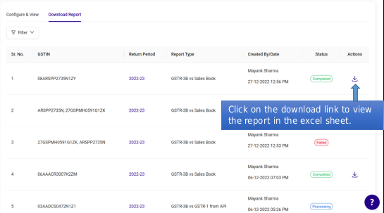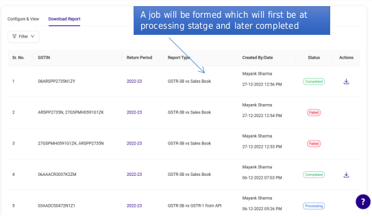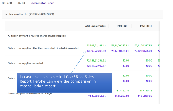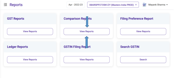 Comparison Reports are used for comparing different types of report such as GSTR3B vs Sales Book,GSTR3B vs Purchase,GSTR3B vs GSTR1 from API etc.